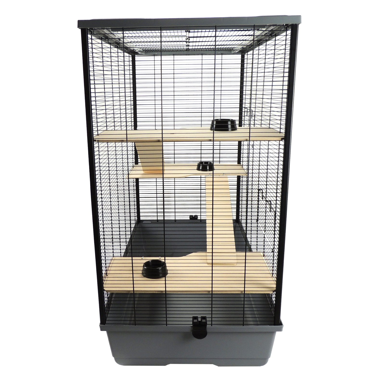 This cage is a great size but the doors on the front are far too small so to clean out the tray I have to take the whole cage apart to reach it .