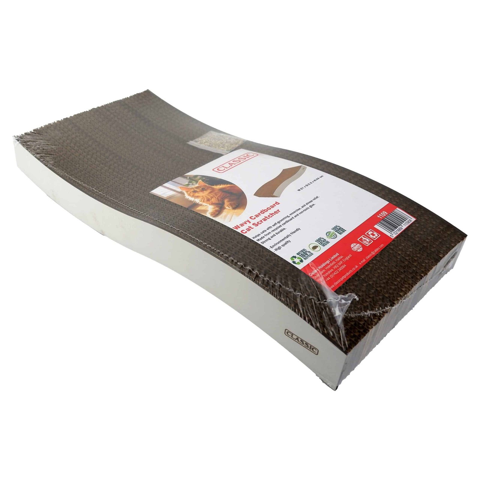 Crafted from recycled cardboard and non-toxic glue, this scratcher is both strong and durable, ensuring it withstands the enthusiastic scratching of your beloved pet. Plus, its environmentally friendly materials make it a responsible choice for eco-conscious pet owners.