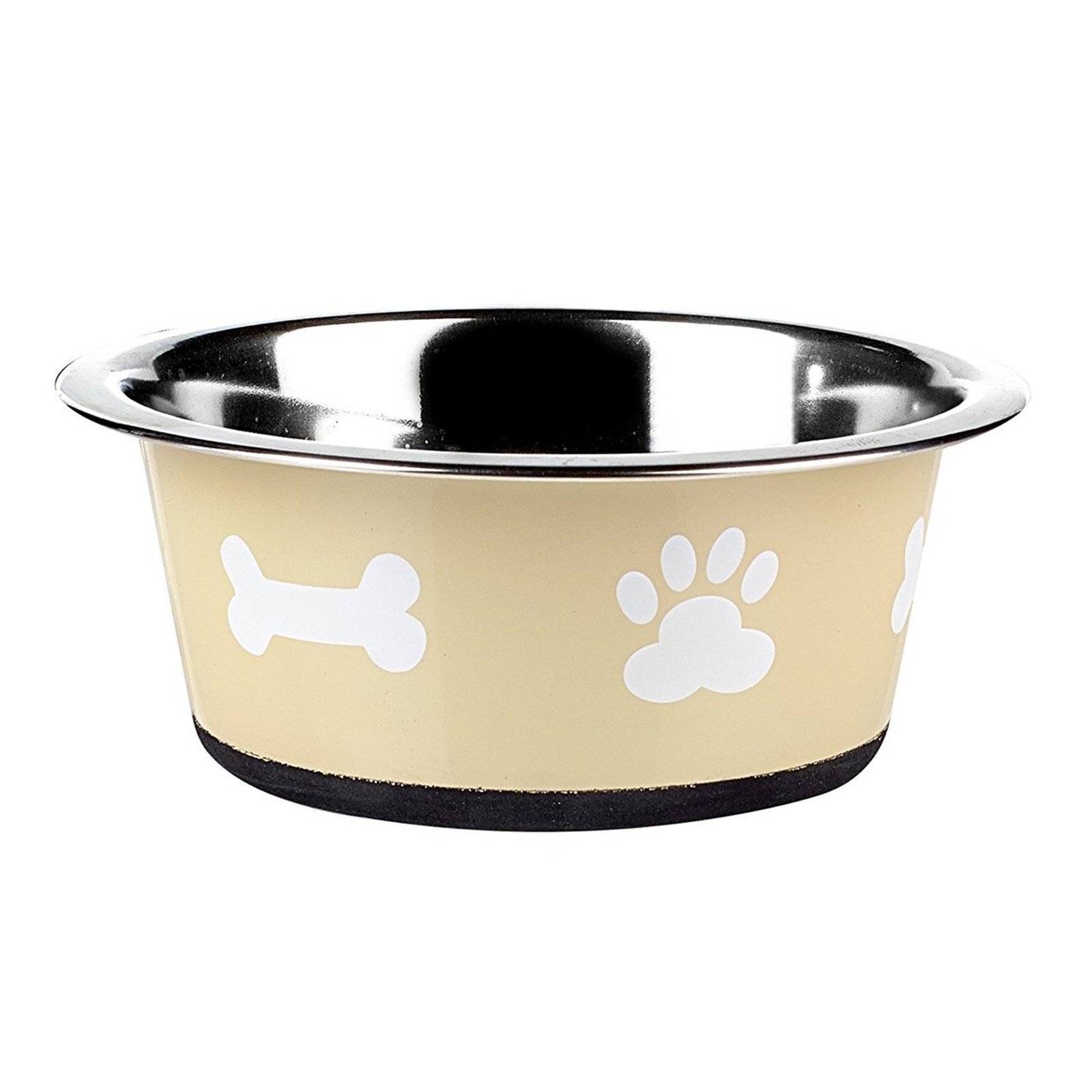 Featuring a stylish natural enamel applied finish complemented by a contrast black design, this bowl not only serves its purpose but also adds a touch of elegance to your pet’s feeding area. The unique fused on non-slip rubber rim ensures that the bowl stays in place, preventing spills and mess during mealtime.