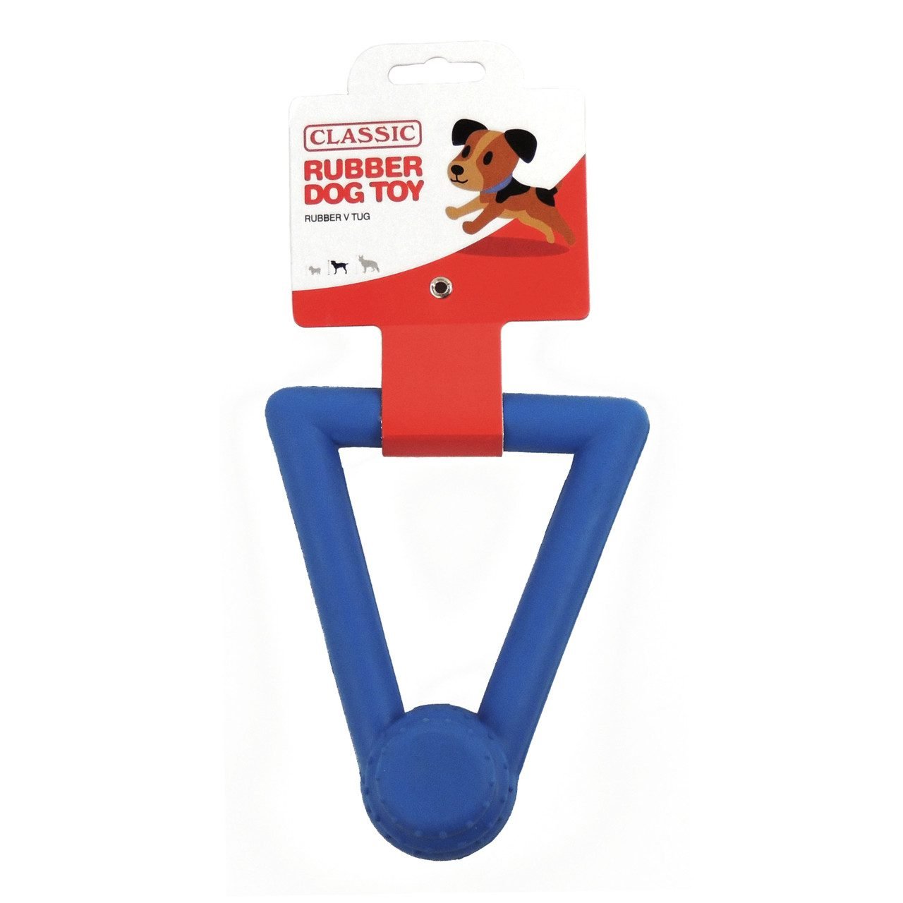 Introducing the Dog Toy Rubber “V” Tug 150mm in a vibrant blue, part of Classic’s renowned range of Tough Rubber Dog Toys. This fun and colourful toy is designed to withstand the rough and tumble of playtime, making it a perfect choice for energetic dogs.