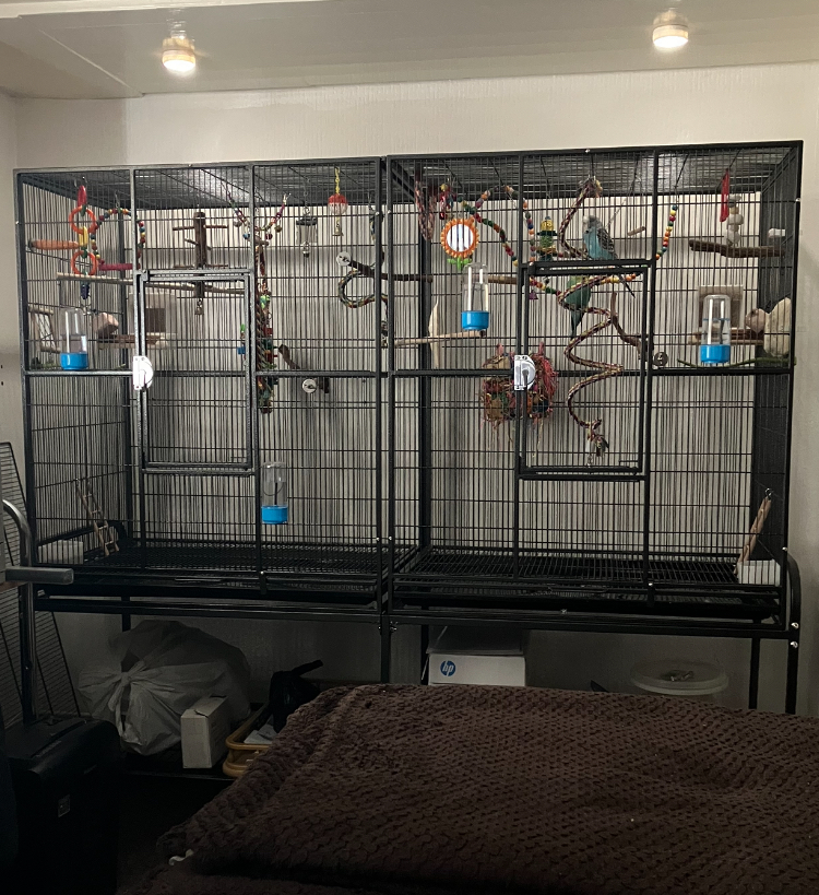 2. Amazing cage for my 4 budgies – plenty flying and playing space !