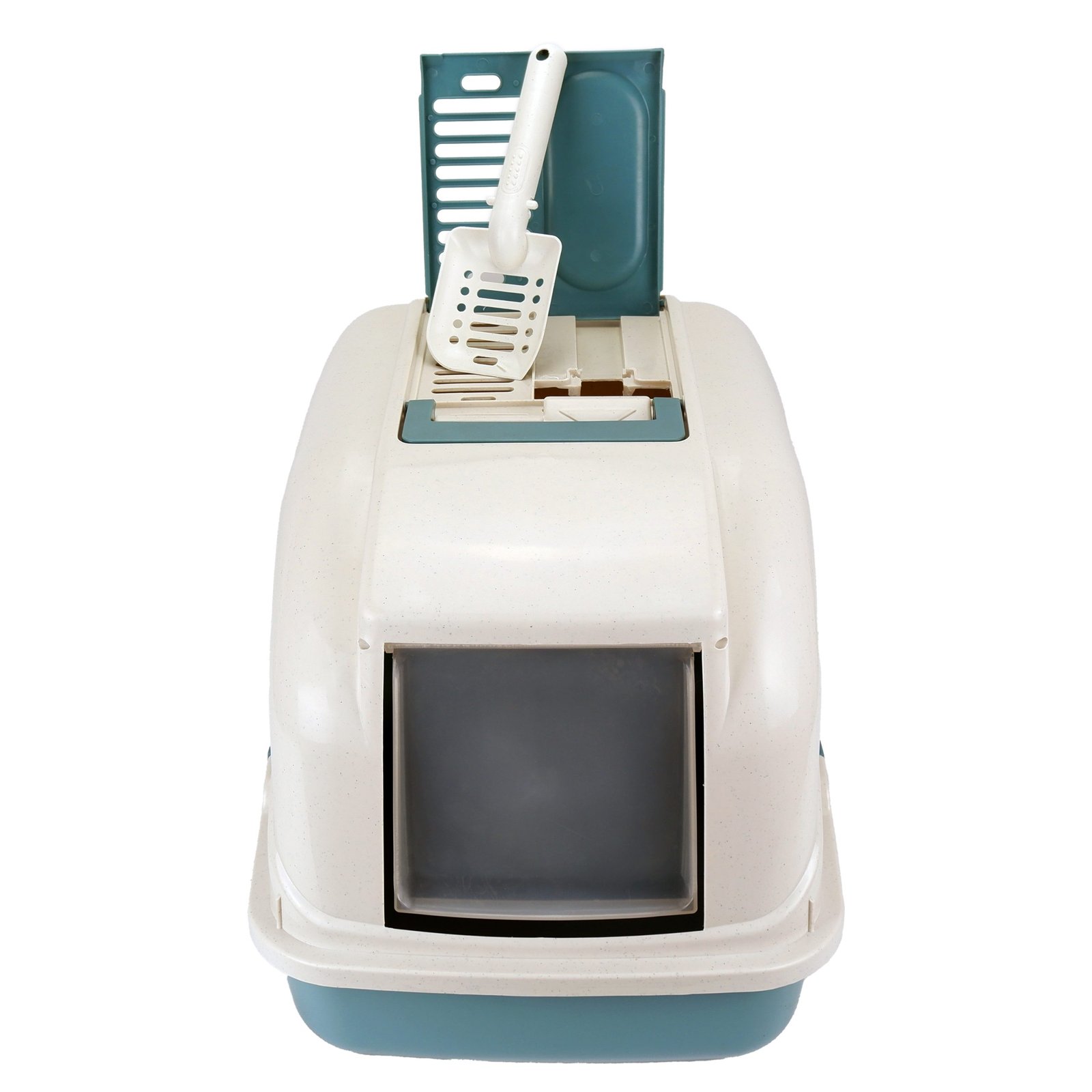 Enclosed Hooded Cat Litter Box with Handle & Scoop – Blue (50.5cm x 40cm)