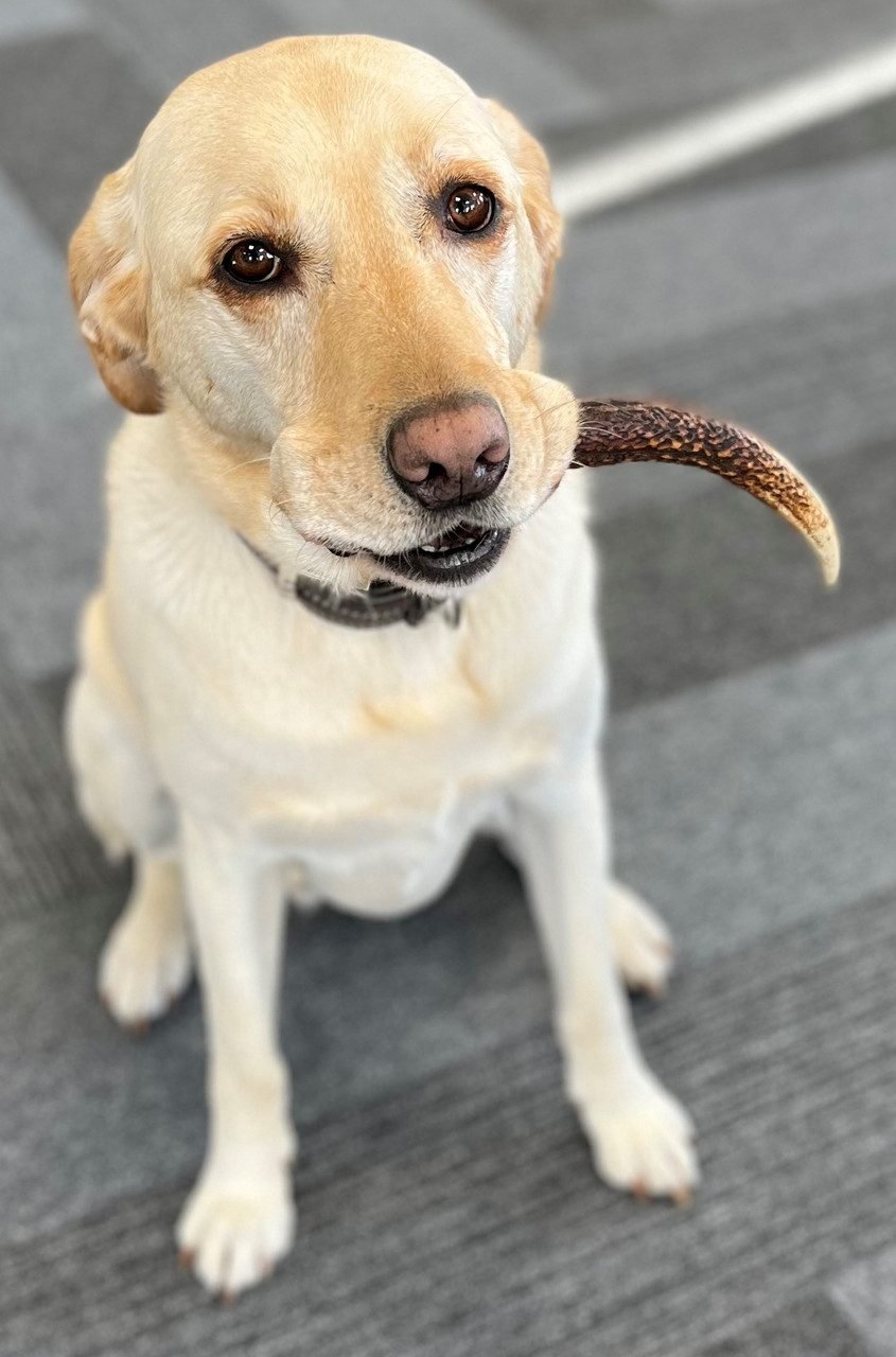 Antlers are an excellent source of entertainment for dogs of all sizes. Always supervise your dog with an antler and remove it immediately if large pieces break off.