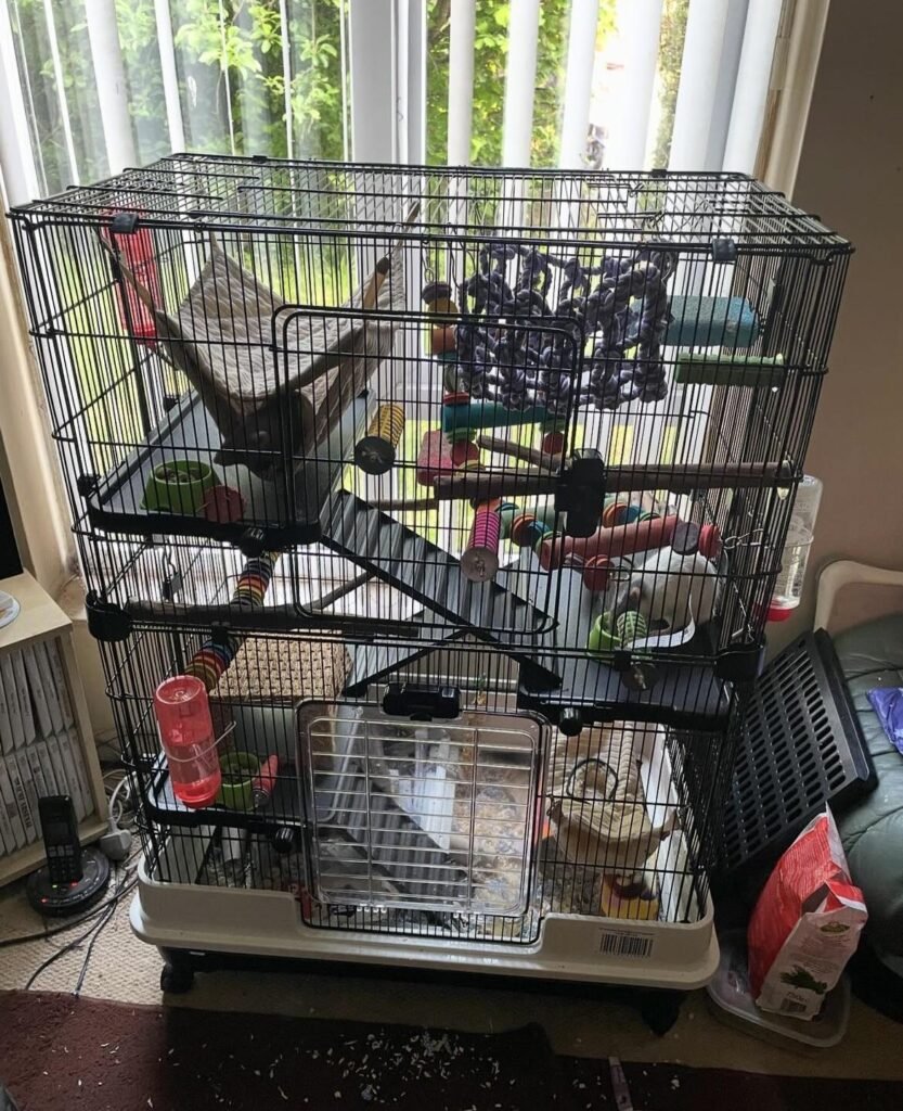 9. We’re new to rat ownership but the cage is bigger than expected and easy to clean, with the pull out bottom drawer and two large doors on the front. The top didn’t feel quite so secure, but was easily reinforced with some cable ties. The rats certainly seem to be enjoying their new home.