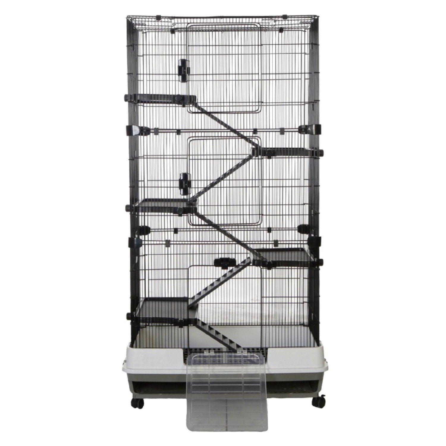 7. I was originally wishing to buy the 3 level cage, as this was unavailable I purchase the 5 level. Firstly the downside, there aren’t any build instructions, however my 9 yr old and I figured it out from looking at the picture of the cage. The cage corners are slightly wider than the other bars, this said we have young rats and they can’t squeeze through, so no complaints re this. I’ve had to use a little clip provided on the bottom of the metal cage door as I was concerned that they may be able to squeeze through. Overall I’m happy with this cage and would recommend, it’s more smartly designed than other cages I viewed, with the added bonus of wheels. Another bonus which the site doesn’t state is that you can make the cage, a one level , 3 level or 5 level. I’ve kept mine at 3 level as they are young and will add the other levels are they grow. The one level option will be handy if we need to take them away with us to transport.