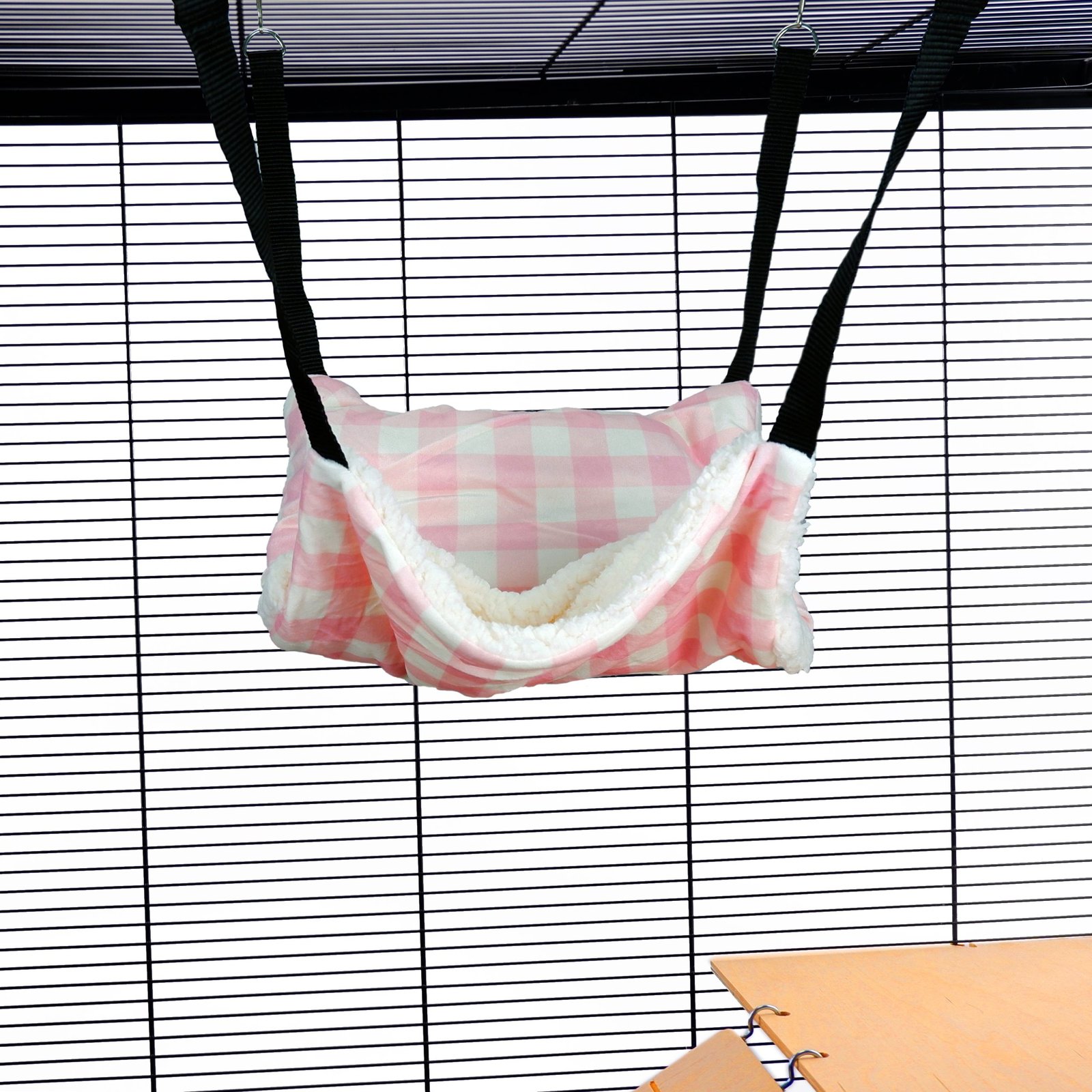 Pet Rat Ferret Chinchilla Fluffy Lined Hammock With Pouch – Pink Gingham | Little Friends