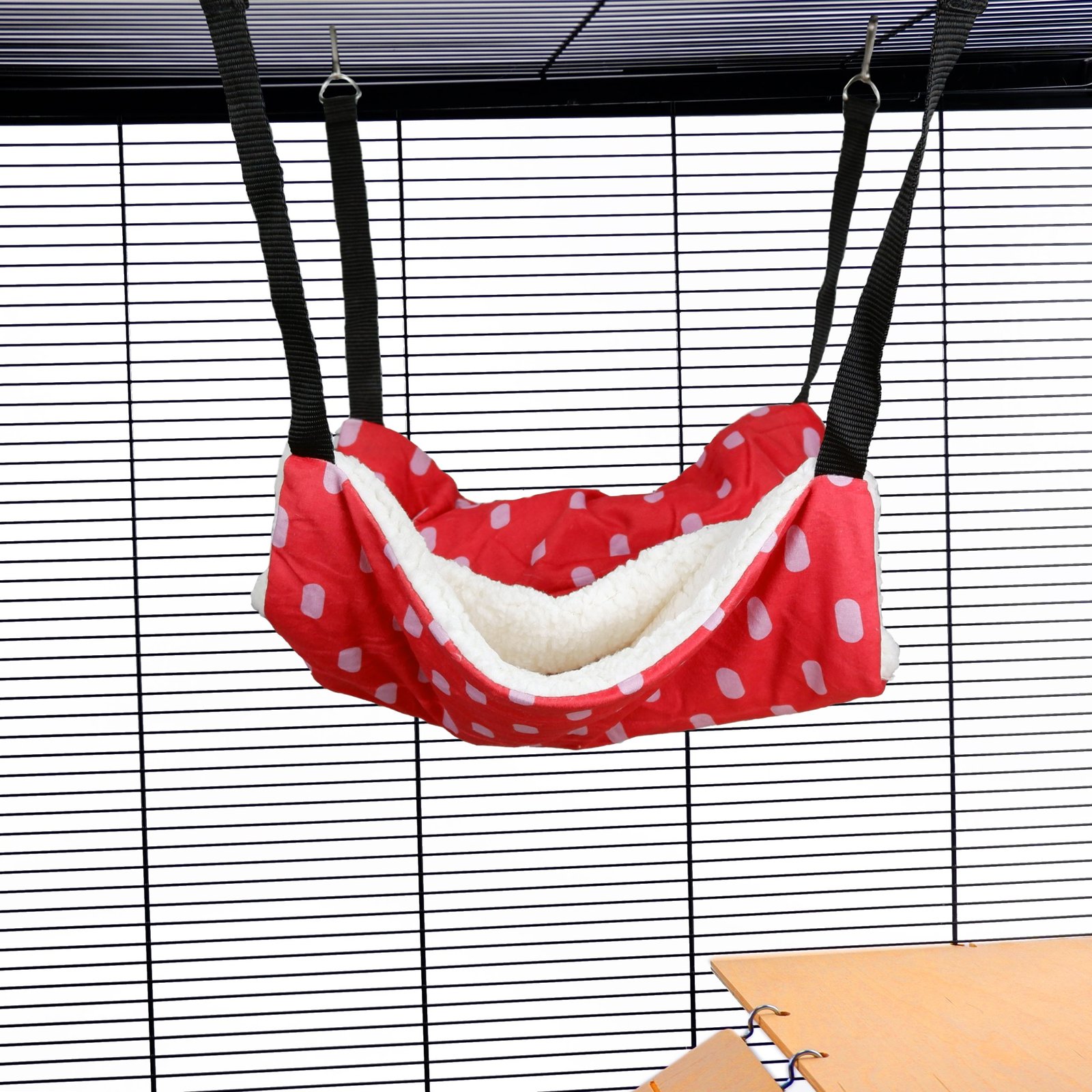 Pet Rat Ferret Chinchilla Fluffy Lined Hammock With Pouch – Red Dots | Little Friends