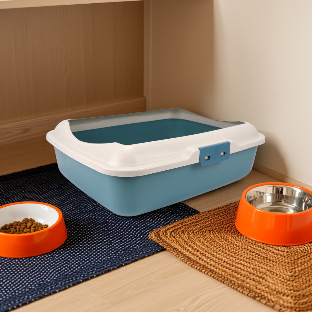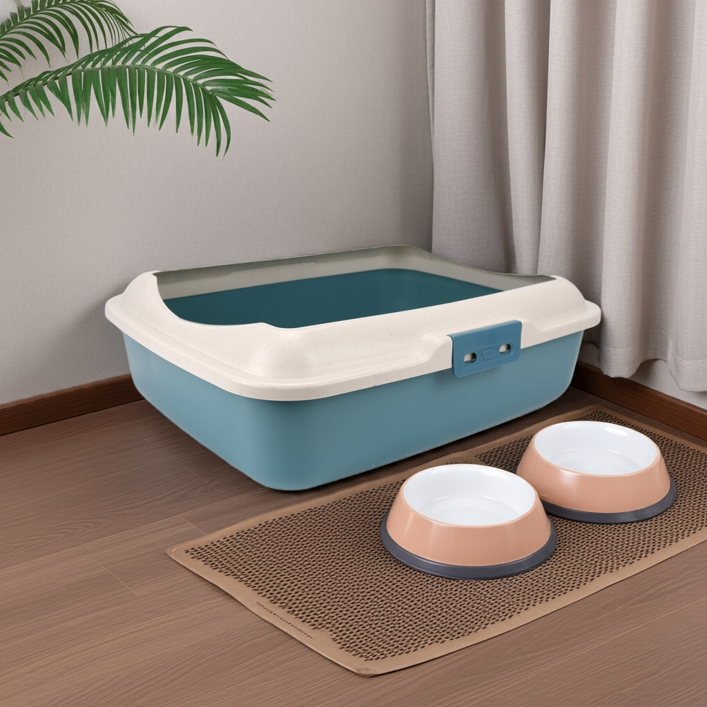 Premium Cat Litter Tray with Raised Rim – Blue (50cm x 40cm)