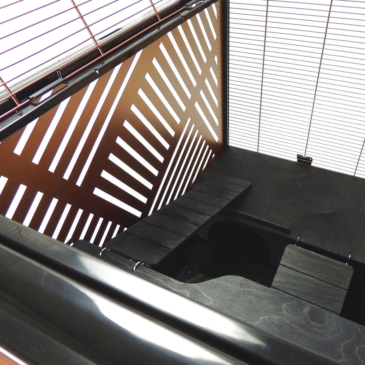 The colours and back panel make it fit seamlessly into our living room without overly standing out as a rat cage.