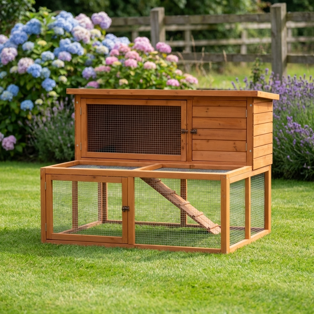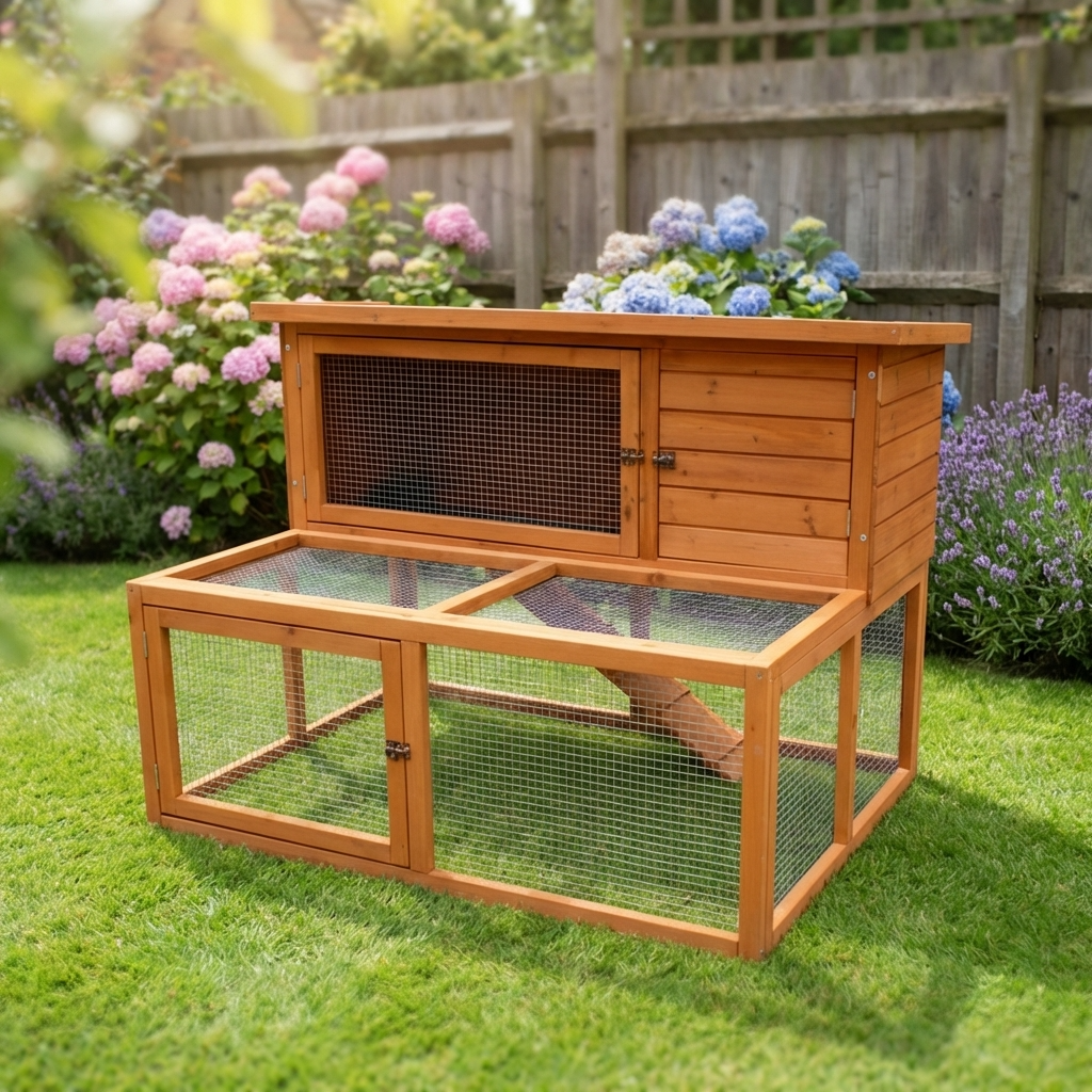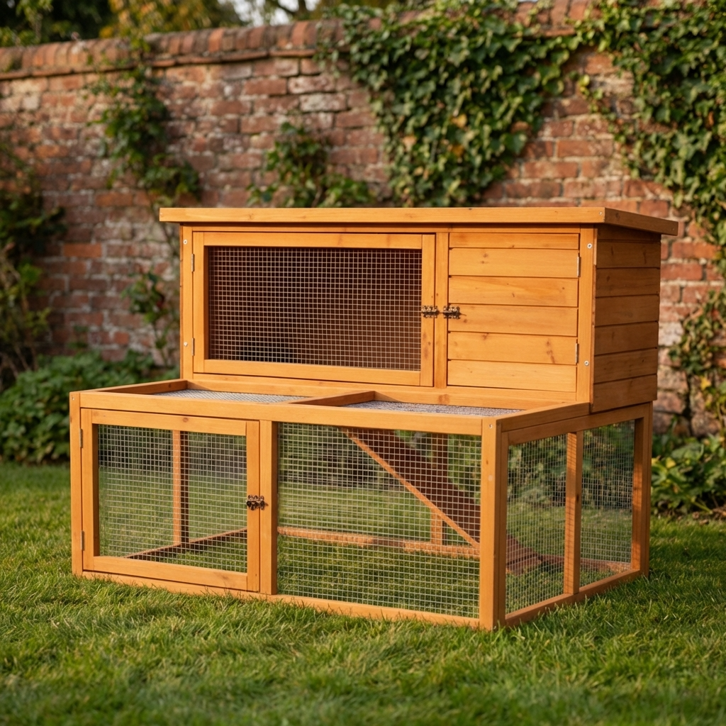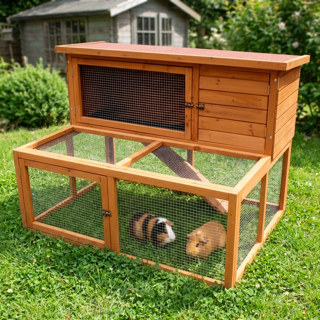 The Little Friends Tiered Hutch with Play Pen represents the pinnacle of outdoor rabbit and guinea pig housing. This comprehensive setup combines multi-level living quarters with an attached exercise area, providing everything your pets need to thrive outdoors. The tiered design maximises vertical space whilst the integrated play pen ensures your pets have room to exercise, all within one professionally designed unit.